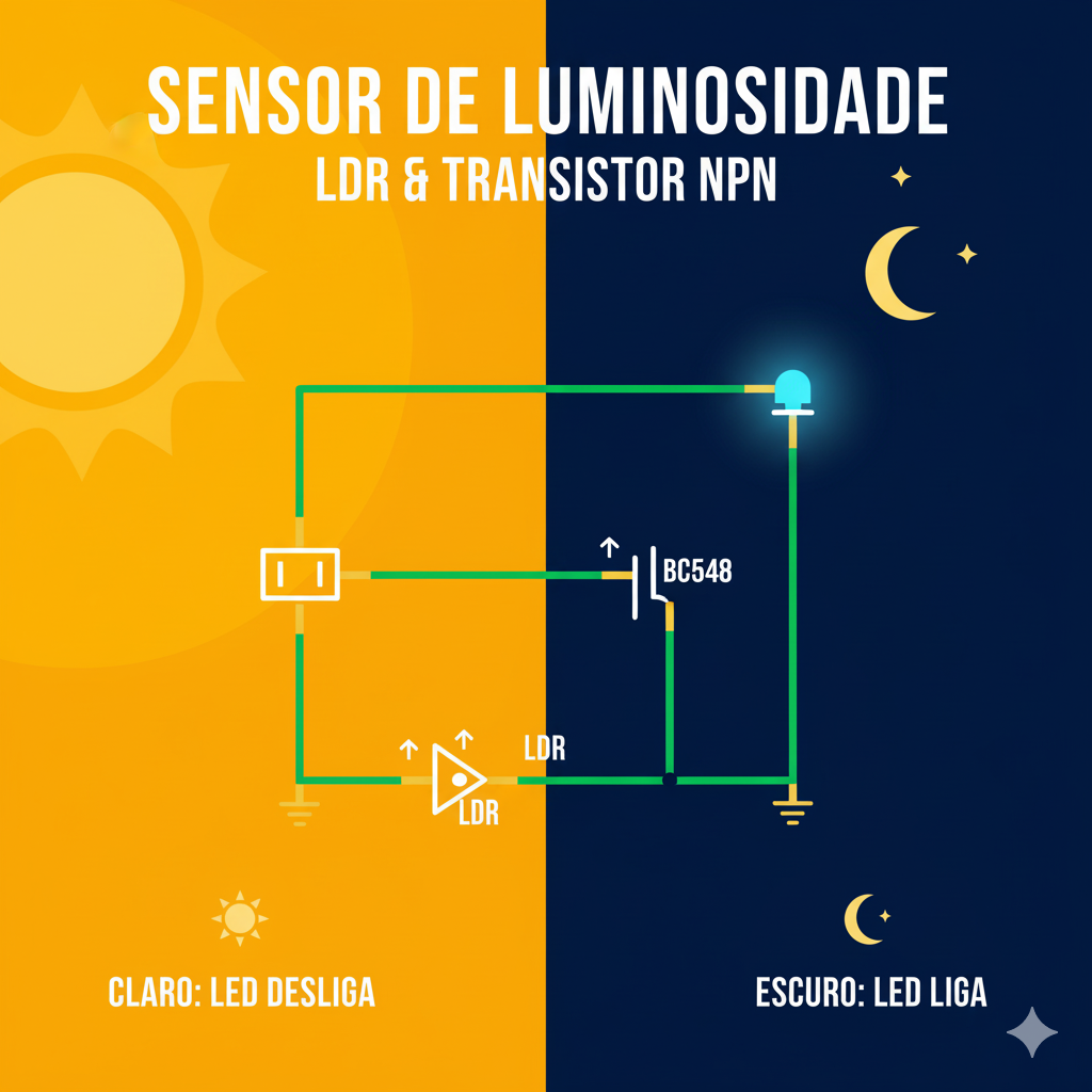 prenda passo a passo como funciona o clássico circuito com LDR e transistor BC547. Entenda…